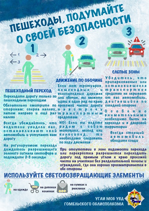 Так, за 9 месяцев 2020 года на территории Гомельской области зарегистрировано 99 дорожно-транспортных происшествий с участием пешеходов, в которых 12 человек погибли и 88 – получили травмы различной степени тяжести. По вине самих пешеходов произошло 3 происшествия, в которых 1 человек получил телесные повреждения и 2 – погибли.