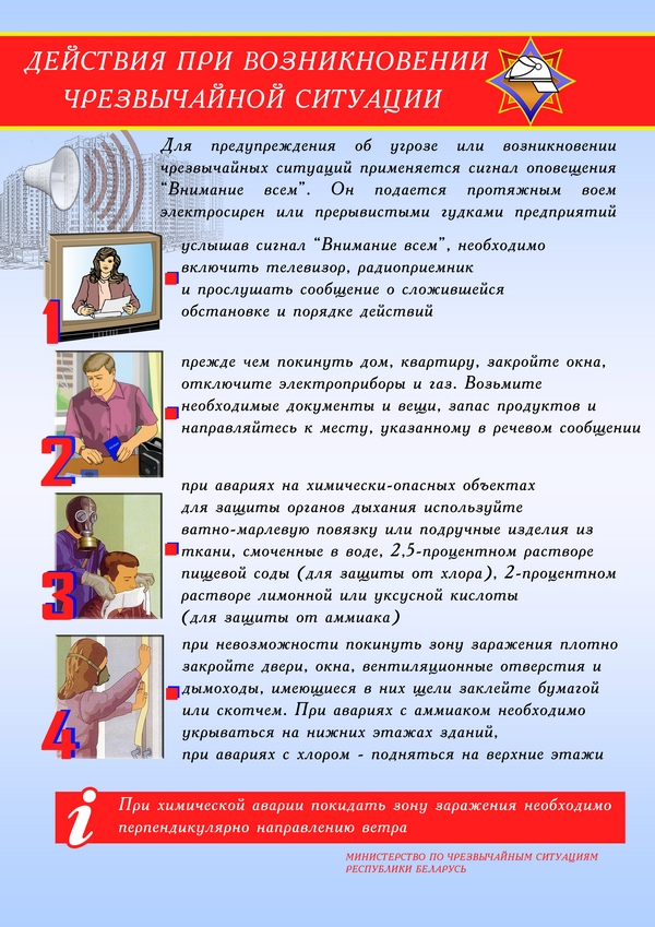 При получении информации об угрозе либо возникновении аварии с выбросом аммиака необходимо: