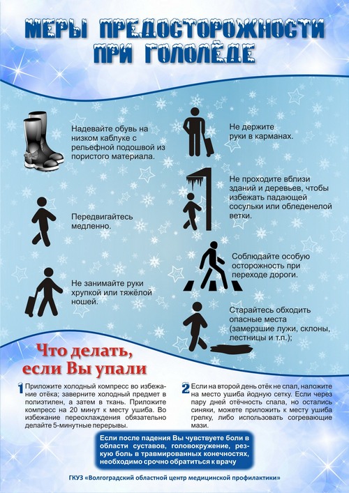Чтобы снизить риск падения при гололеде, необходимо соблюдать следующие правила: