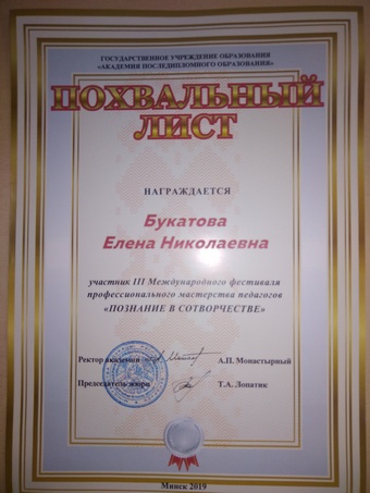 23 – 25.10.2019 группа педагогов (Букатова Е.Н, Поправко В.П., Русакова Е.Л., Швед Т.М.), участников инновационного проекта, приняли участие в работе III Международном фестивале профессионального мастерства педагогов «Познание в сотворчестве»