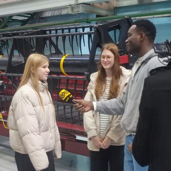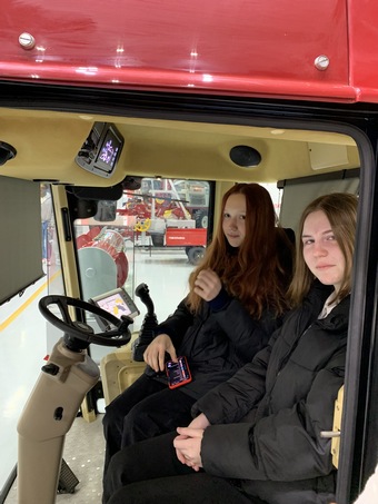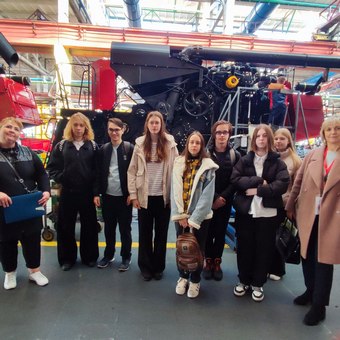 Экскурсовод познакомила учащихся с продукцией предприятия, рассказала и показала, как работает современное высокотехнологичное производство, способное выпускать до 5000 комбайнов в год, ответила на вопросы учащихся.