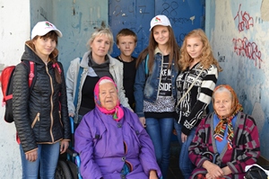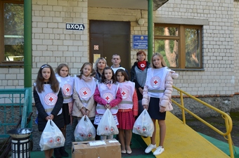 Ко Дню пожилого человека учащиеся 8 «Д» класса- члены волонтерского отряда «Огонек» провели акции «Пять картофелин» и «Забота» и передали одиноким престарелым людям овощи к осенне-зимнему периоду, а также средства личной гигиены в Центральное районное общество «Красный крест» Центрального района.