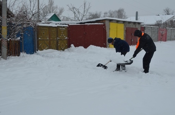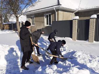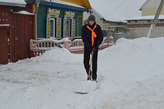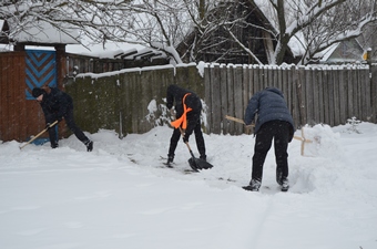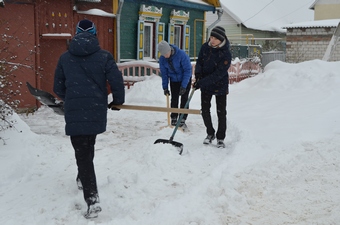 Акция «Уберем сами» по очистке частных подворий от снега в микрорайоне «Старая Волотова». Учащиеся 8 "Д" класса в сопровождении педагога-организатора Сивцова В. В.