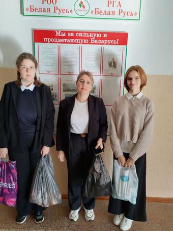 Первичная организация РОО "Белая Русь" ГУО "Средняя школа №66 г. Гомеля" приняла участие в благотворительной акции "Протяни руку помощи". Учащиеся школы и председатель первичной организации РОО "Белая Русь" Костюкова Т.Е посетили на дому учащихся из малообеспеченных семей нашей школы и оказали им помощь в виде предметов одежды, обуви, продуктов питания.