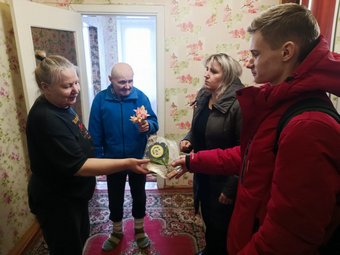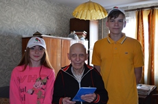 Учащиеся 5 «А» класса посетили Синилло Евгения Владимировича, 1934 года рождения, поздравили с праздником, принесли предметы личной гигиены, овощи к осенне - зимнему сезону. Наши волонтеры регулярно посещают одиноких престарелых людей, оказывают благотворительную помощь, помогают по дому, приносят лекарства. Желаем крепкого здоровья и бодрости духа!