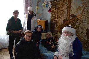 Ребята волонтерского отряда «Огонек» поздравили с наступающим Новым годом ветерана Великой Отечественной Войны Корнеенко Василия Ивановича. Волонтеры вручили подарок от спонсоров нашей школы ОАО «Спартак». Здоровья, удачи и добра всем ветеранам нашего микрорайона.