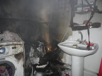 В результате пожара повреждена стиральная машина «LG» 2007 г.в., имущество в ванной комнате 2х2 метра в деревянном доме 7х9 метров. Хозяин 1958 г.р., неработающий находился в состоянии алкогольного опьянения.