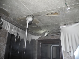 В результате пожара огнем повреждена шиферная кровля на площади 30 кв. метров, повреждено перекрытие на площади 20 кв. метров, повреждено имущество в двух комнатах размерами 3х4 метров каждая в кирпичном доме 8х8 метров. Хозяйка 1967 г.р.