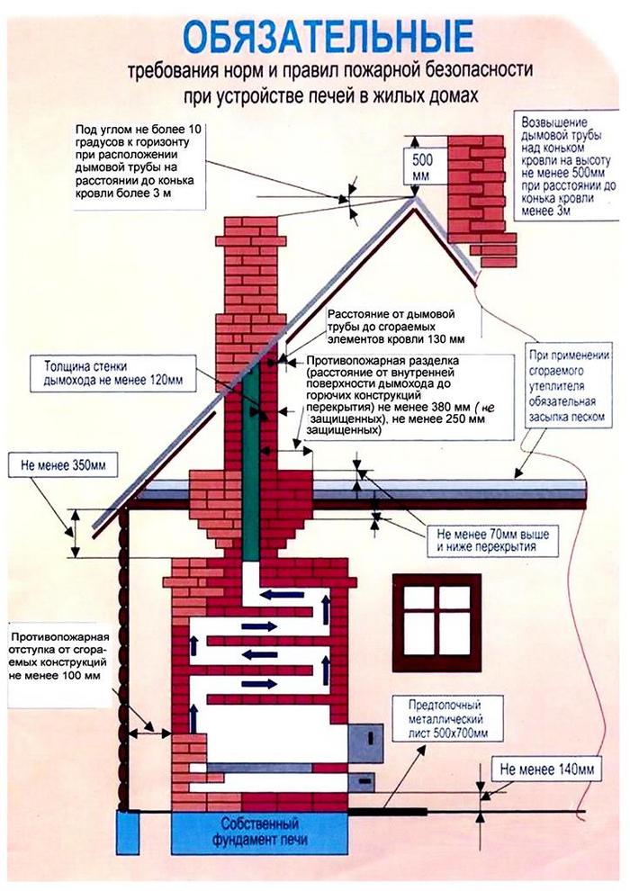 -устраивать в чердачных помещениях горизонтальных дымовых боровов, а также отверстий для чистки дымовых каналов;